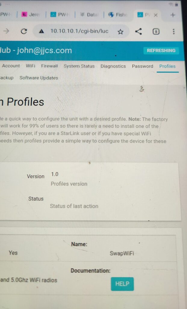 Last problem, is connecting my other devices to the DatHub. By default, the DataHub uses 2.4GHz as the connector to the internet and 5GHz as an access point. This backward from what I need and also a little crazy for other reasons. I need 2.4 GHz to be the radio for my devices to connect to, because a number of them only have a 2.4 GHz radio.
